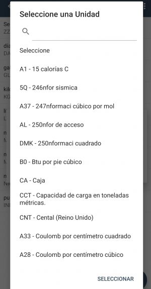 Al presionar Unidades podrá usar la opción (+) para cargar nuevas unidades, esta se seleccionando a través de una lista la unidad deseada y presionando la opción “Guardar”, una vez culminado el registro se visualiza un mensaje “Unidad Agregada”, posteriormente estará disponible en la lista principal.